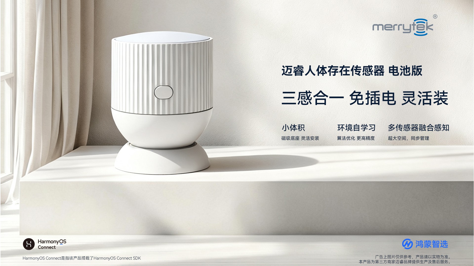 迈睿科技携手鸿蒙智选打造首款电池供电、接入鸿蒙智家的人体存在传感器。1月13日,2026开年重磅旗舰产品——鸿蒙智选 迈睿人体存在传感器 电池版,正式在智慧生活App商城首发开售!小巧体积,灵活安装磁吸底座可粘贴,家居随处可装主机可随时取下......